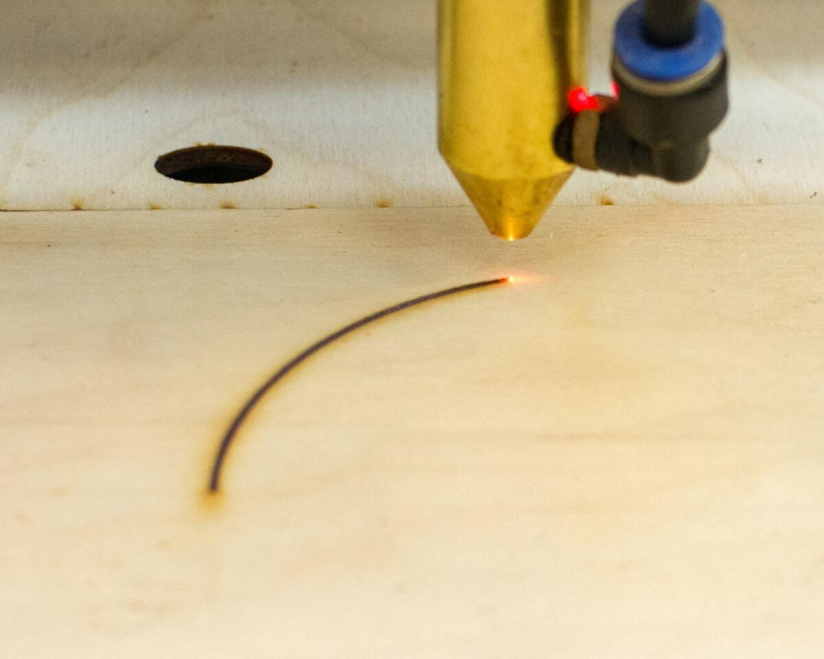 Das Schneiden mit einem CO2-Laser funktioniert ähnlich wie die Lasergravur. Dabei wird das Material durch den Laserstrahl erhitzt und verdampft. Durch den kontrollierten Materialabtrag entsteht dann der gewünschte Schnitt. Durch das Prinzip der kontaktfreien Bearbeitung können auch sehr filigrane Strukturen geschnitten werden.